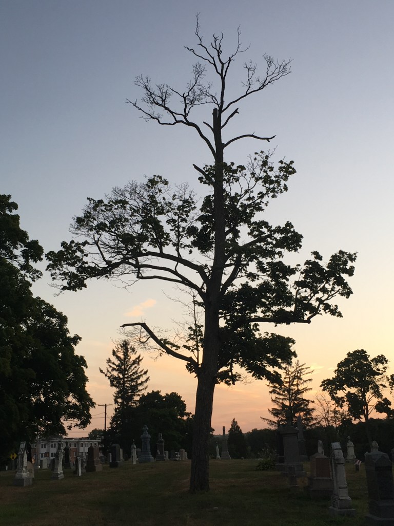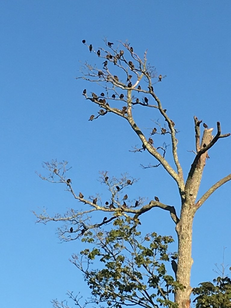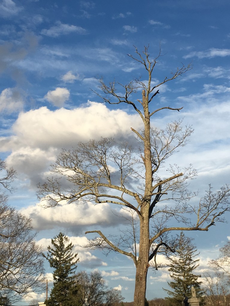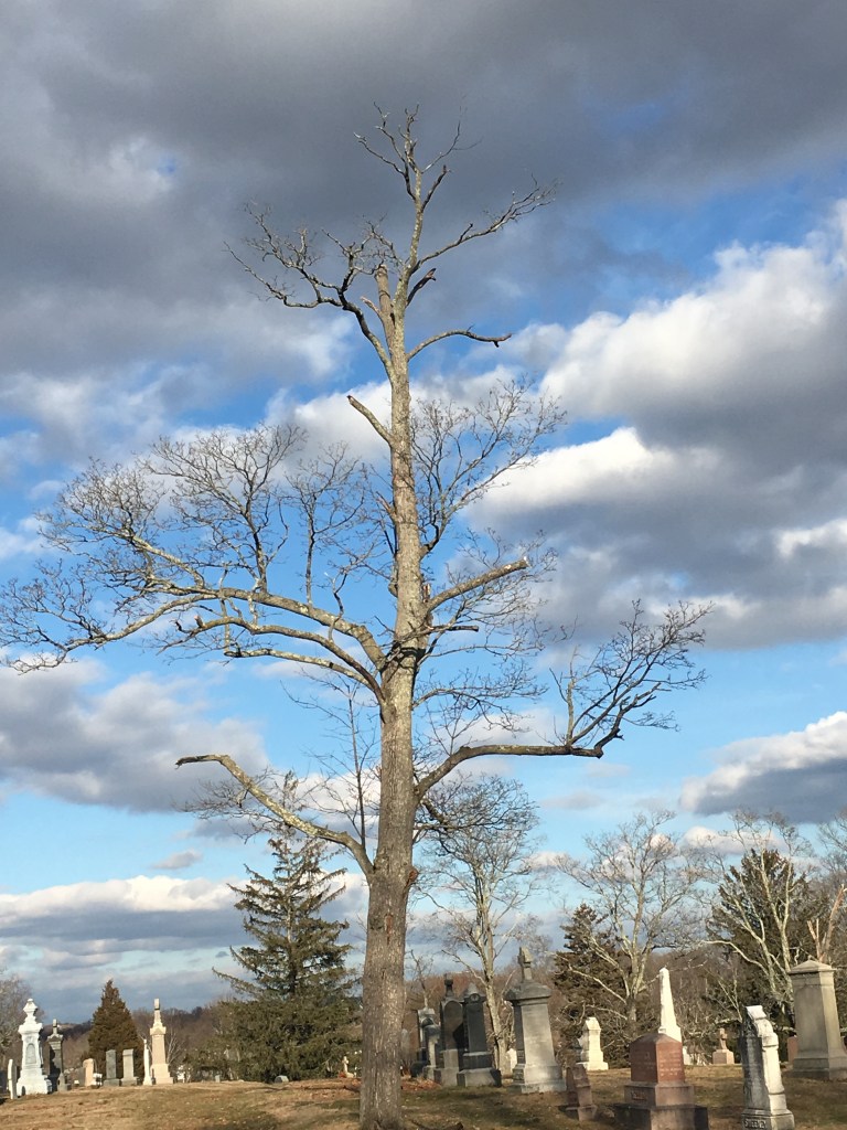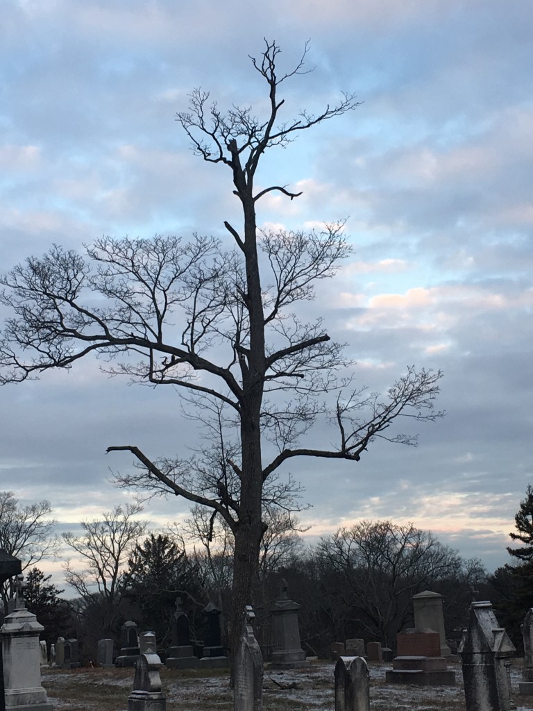 So I call this the Thirty Bird Tree. Throughout this pandemic I have taken so many pictures of this same tree along my walks through this particular cemetery. It’s not a giant majestic tree of great girth and height, but something calls me to it every time I walk this route. I snap a picture to catalog the days, months. It’s a reminder of the changing seasons, that beauty doesn’t mean perfection, and that we are resilient. I can’t tell you how many times I have been greeted by whole flocks of birds, a Perigrine Falcon, Red-Tailed hawk, or silent branches against a blue or creamy grey canvas. Her branches may be a bit sparse and the tree asymmetrical however it is still deeply rooted and teaming with life. The birds are attracted to this one more than any of the other trees within this enclosure, as am I. There is an energy there. My days have been cataloged around this tree an oasis of sorts within uncertain times reminding me to stay rooted and to keep stretching my branches to allow life and light in. After all we are nature!