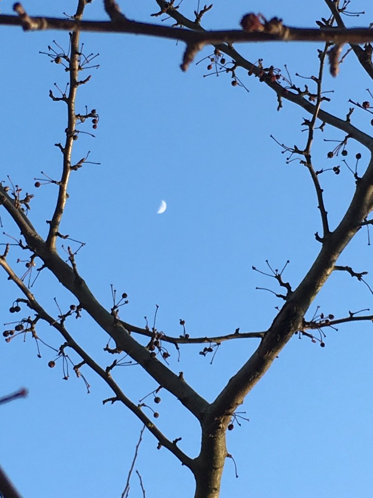 I’ll continue sharing the moon that nestles within branches and wavy trees dancing through watery symphonies.