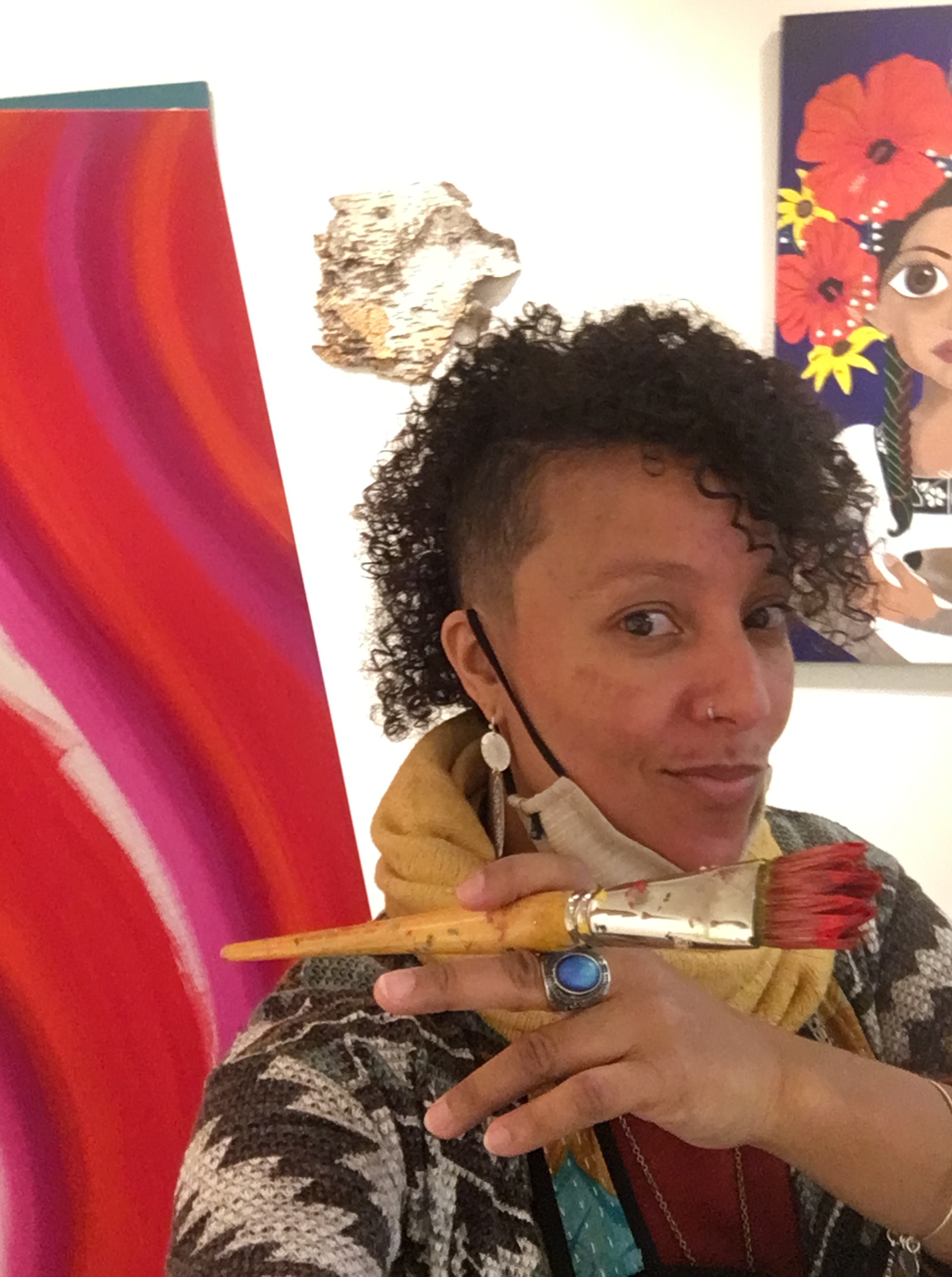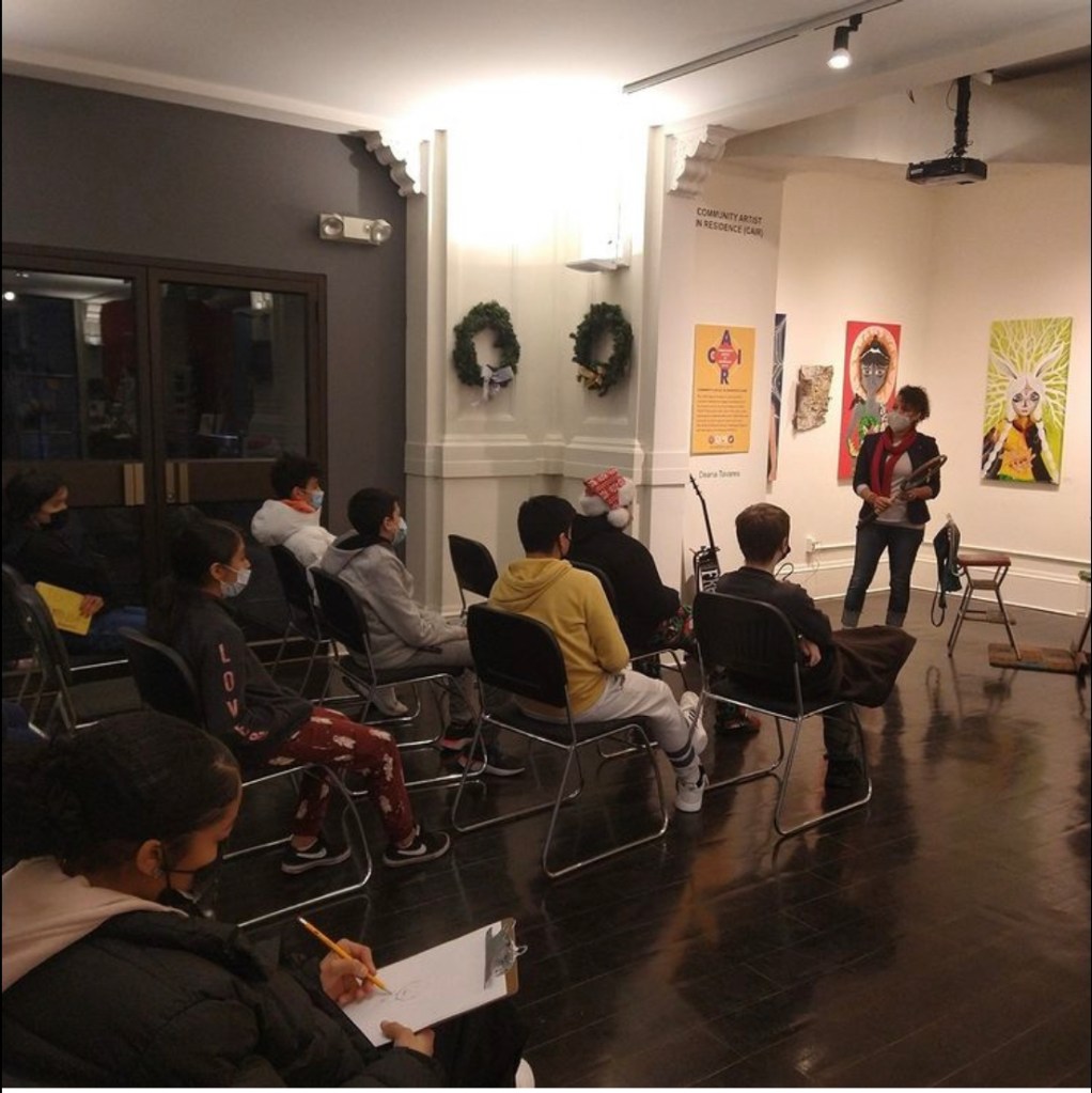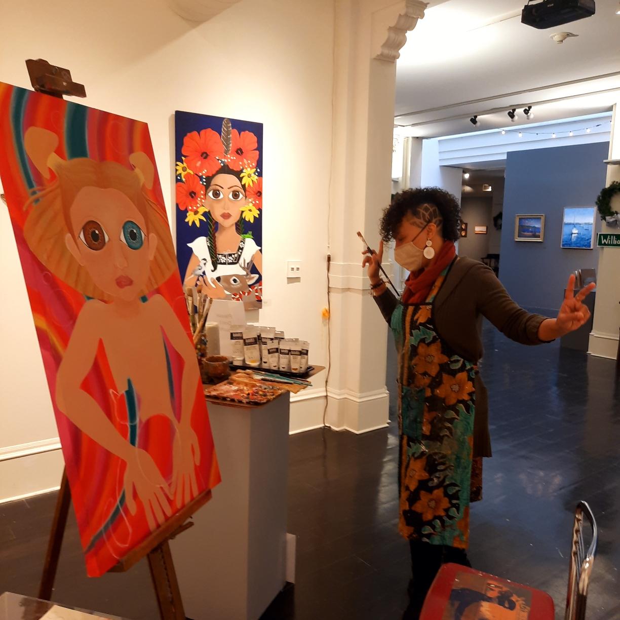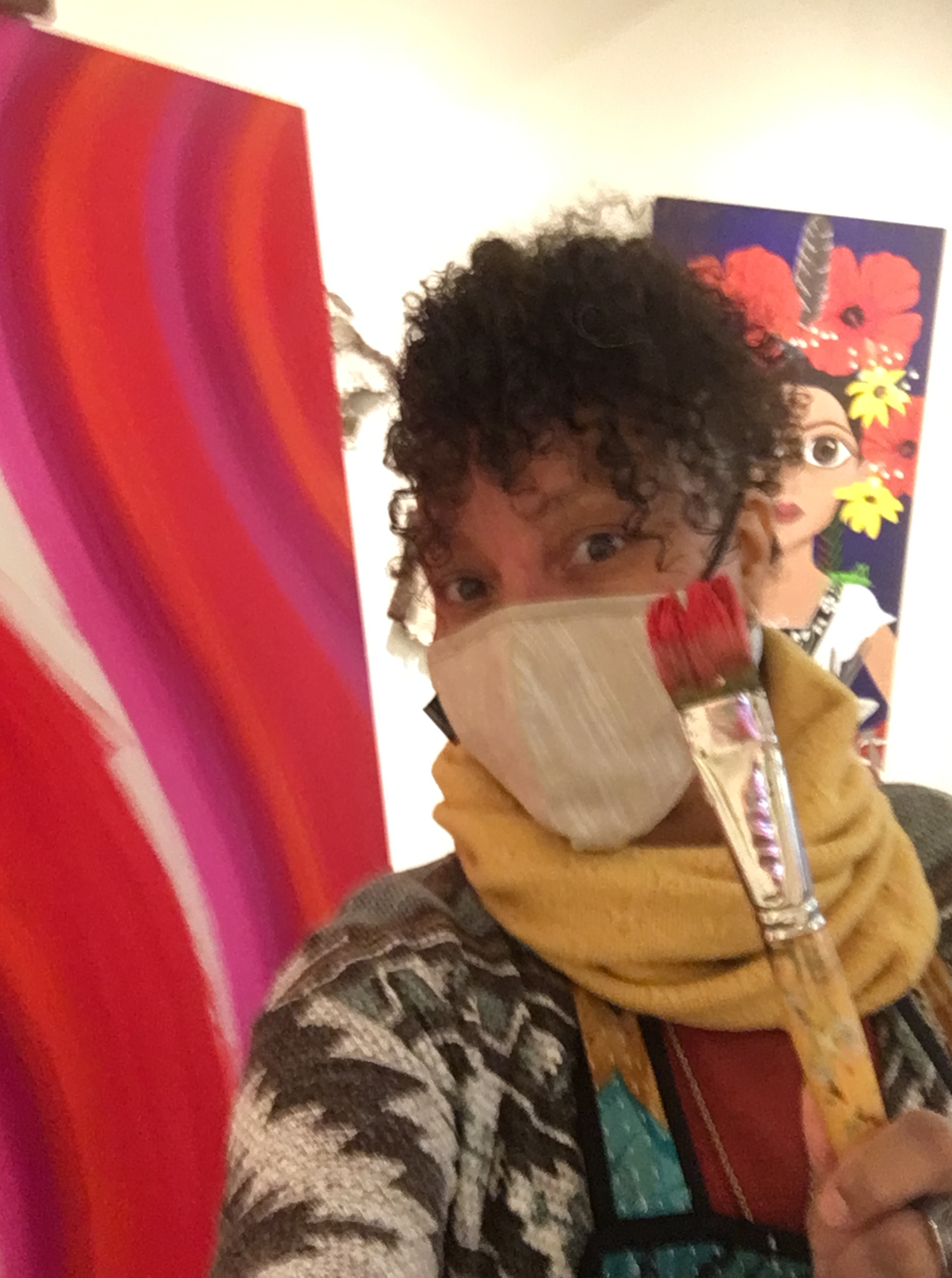After a fresh artsy cut I was off to connect with my hometown community at The New Bedford Art Museum and create in a new yet very familiar space that I had some history with. I was a museum educator and created curriculum for the afterschool program and taught for the art mobile program as well for several years. My grandmother’s 1950’s hatbox was always in tow by my side filled with crafts then, now my acrylic paints and possibilities. The logistics were a bit complicated and also a winter residency during a pandemic, but I embraced this adventure fully and looked forward to this public facing position with an opportunity to grow, share, learn, and connect with others.