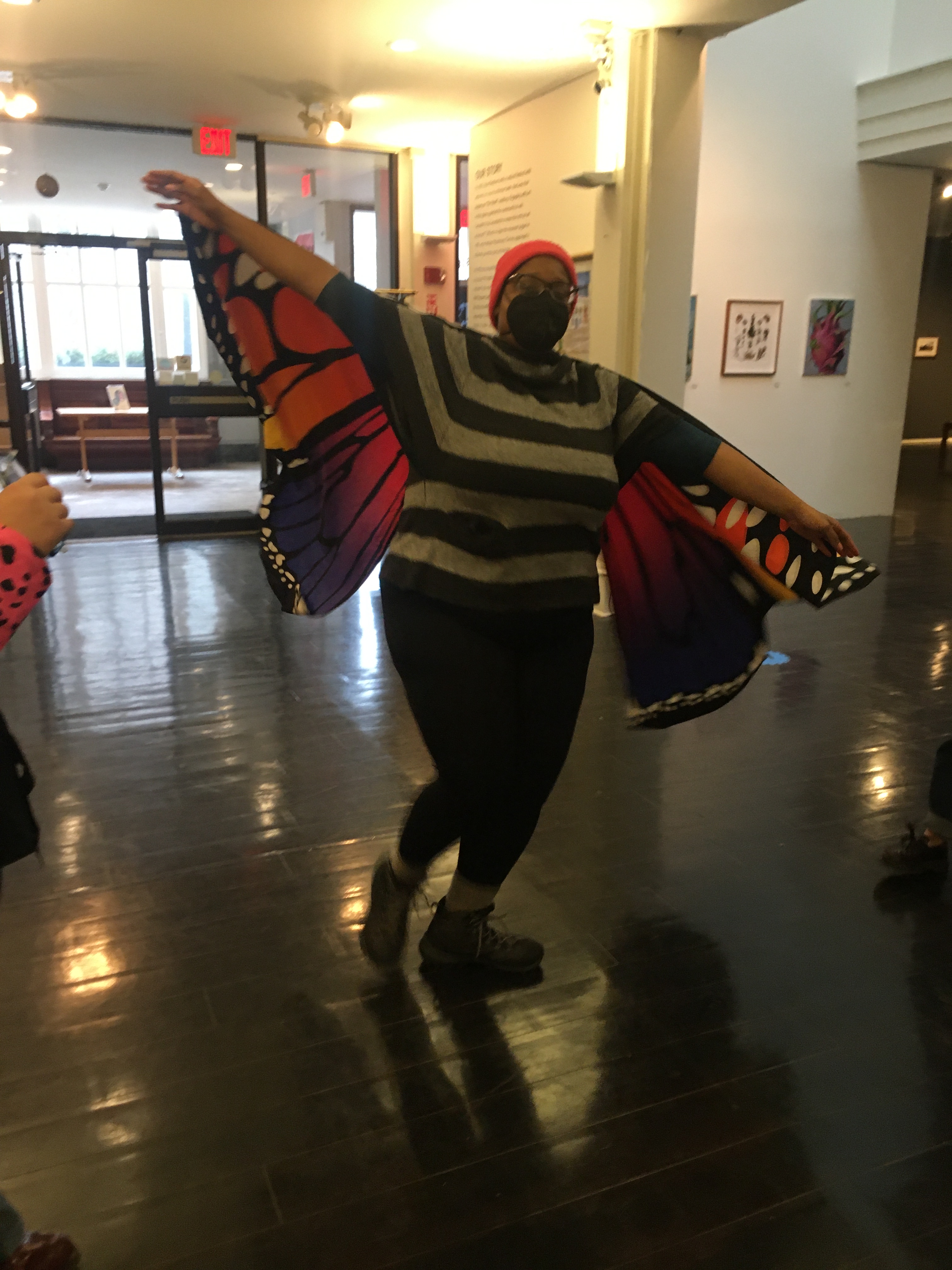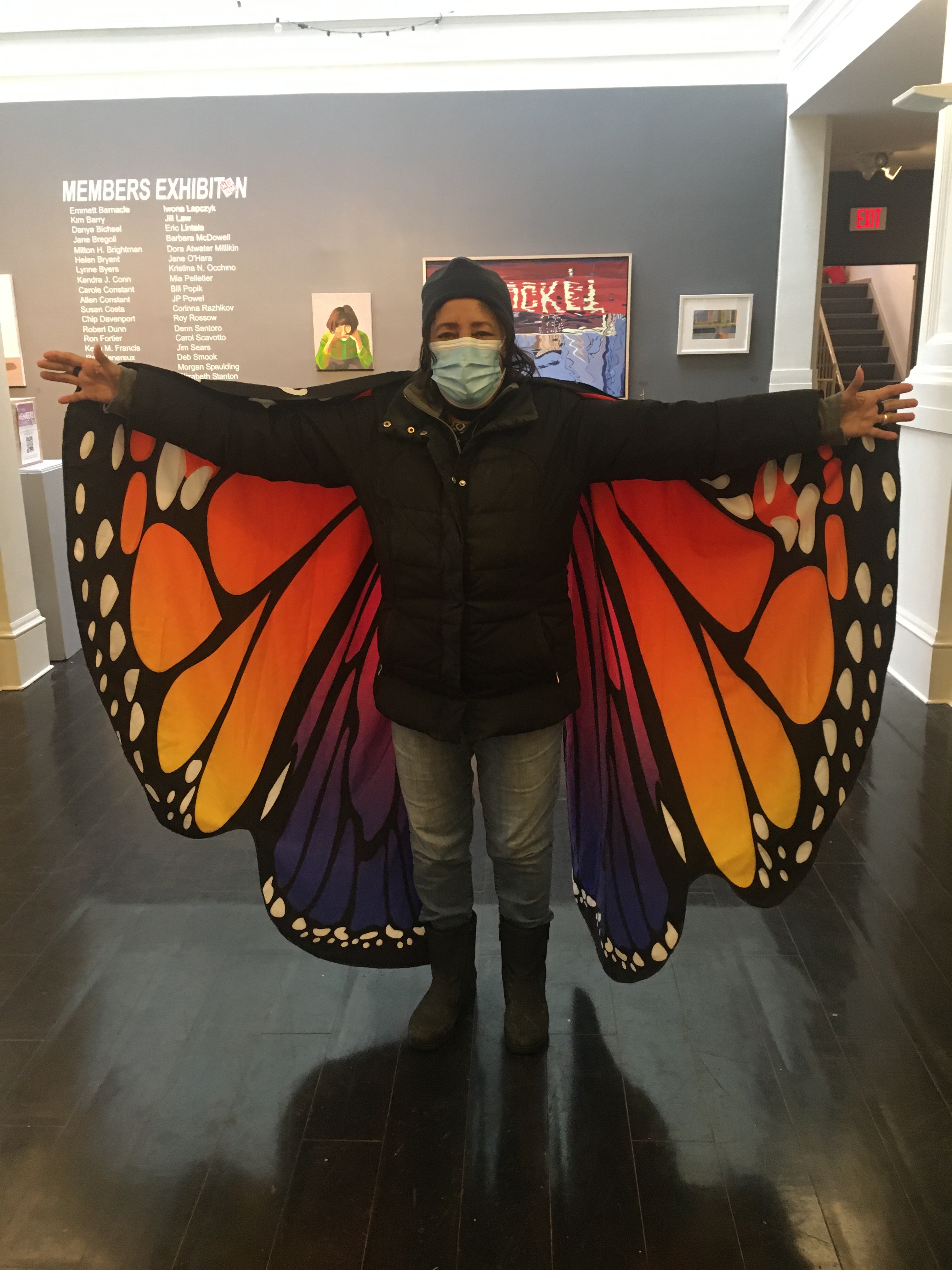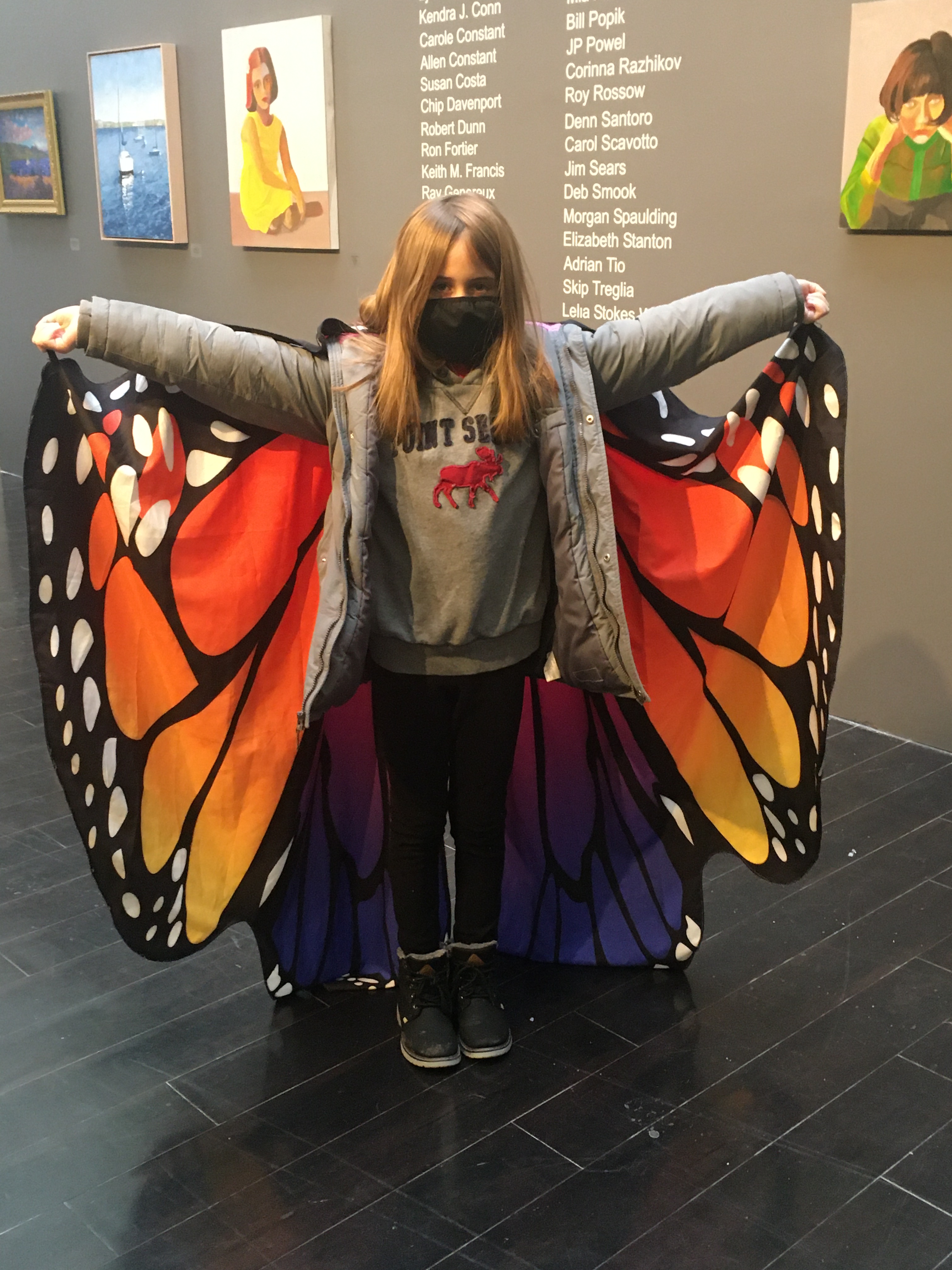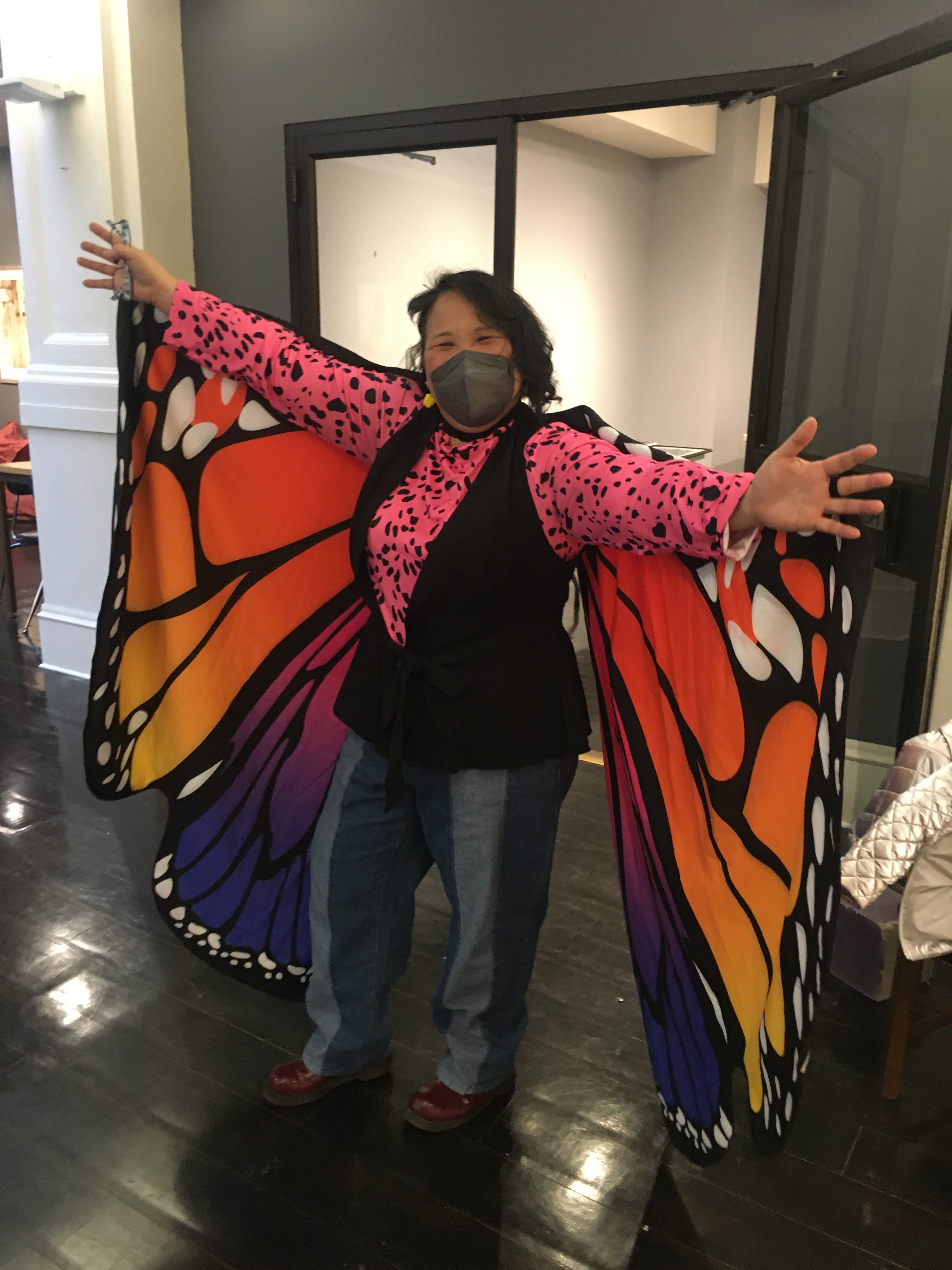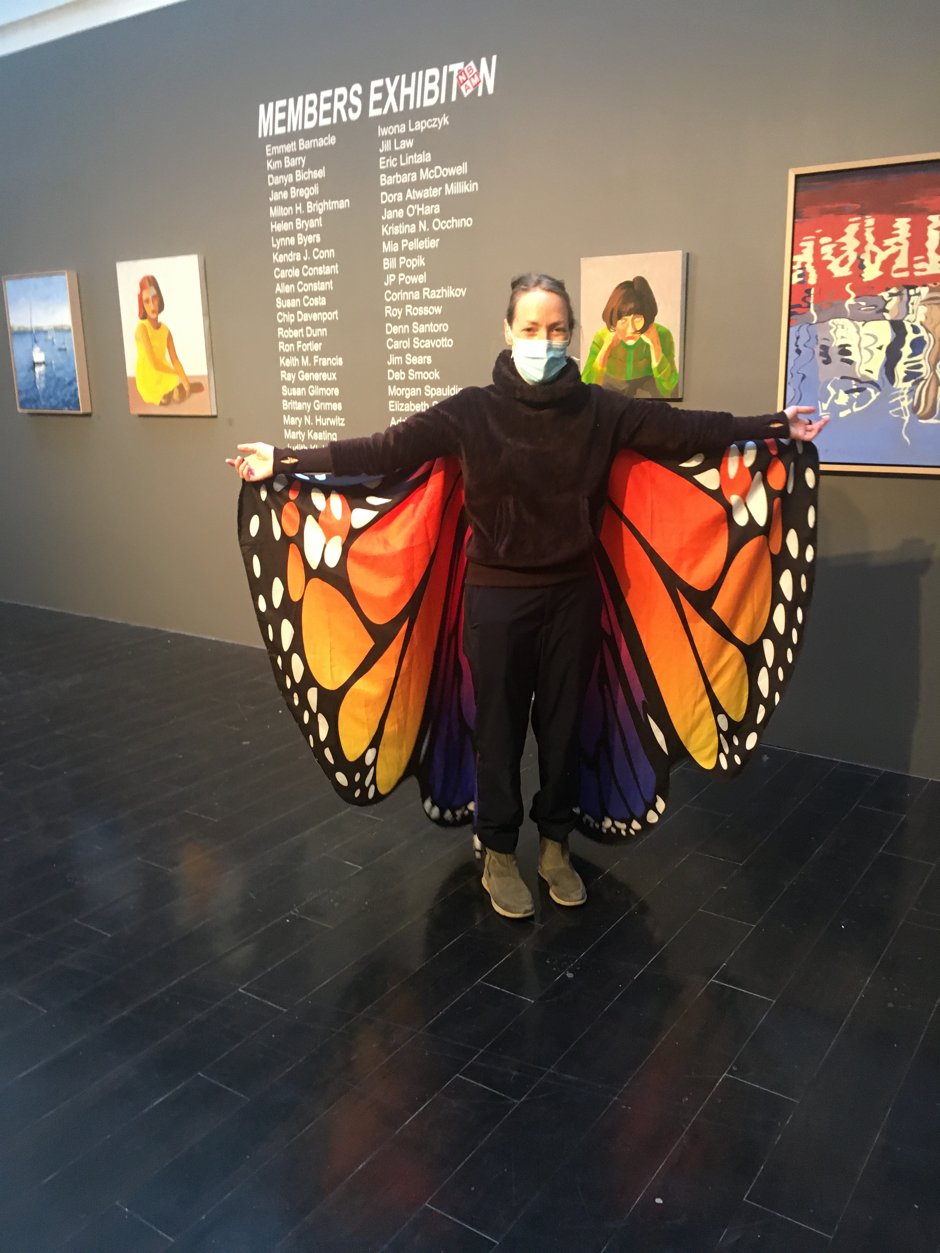 At last ten weeks had come to a close and I put on my butterfly wings to honor what had been my space to create in during my residency. My new artwork not yet complete would head back to my home studio to further evolve. My mother arrived to don the wings and flutter around a bit. Then my Arts Connect International community joyfully arrived from Boston to fill my last days with laughter, excitement, and deep reflection. Dena & Iris joined in to see me off and two of the youngest art enthusiasts learned that they too can fly. Then just as fast as I flew in, it was time to fly off once again on to my next adventure. Then I was off once again with deep gratitude for all of the support, connections, enhanced inspiration, and my grandmother’s hatbox full of acrylic paints and possibilities.