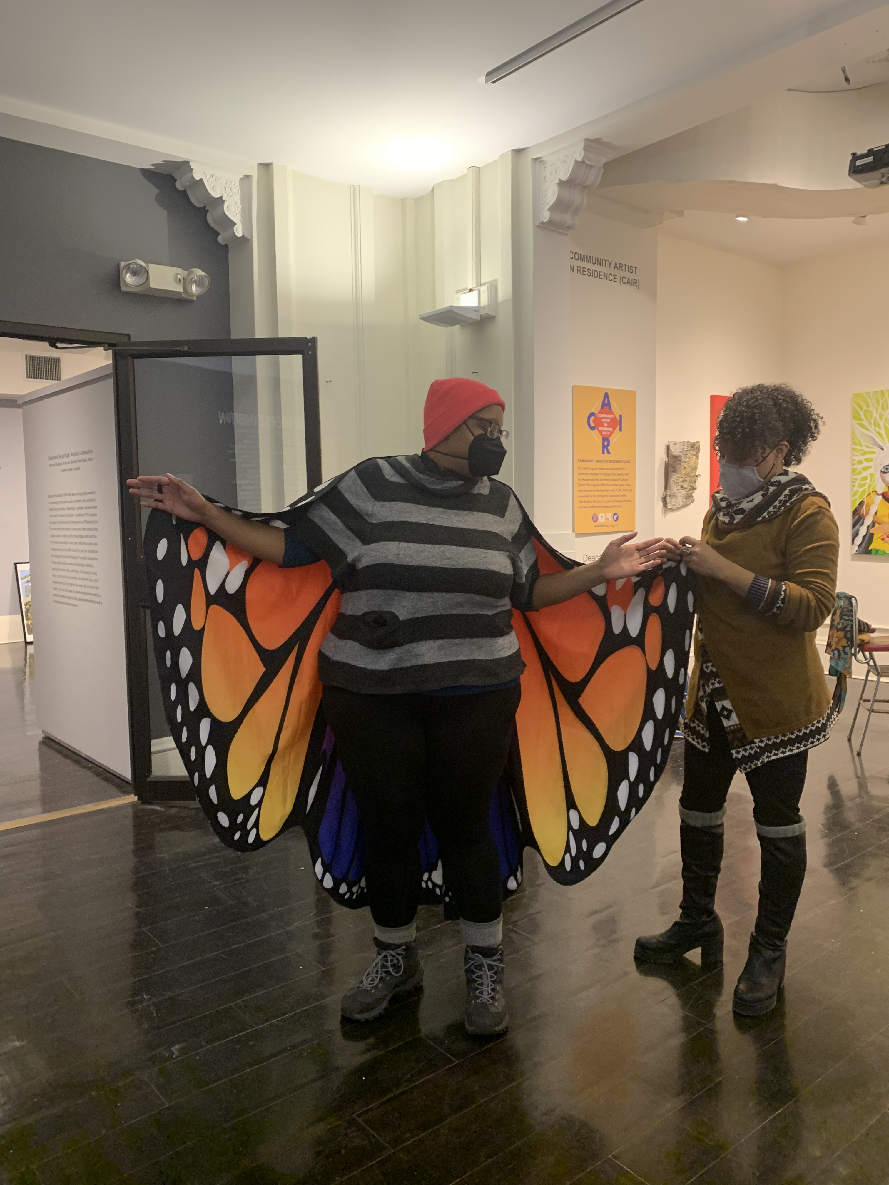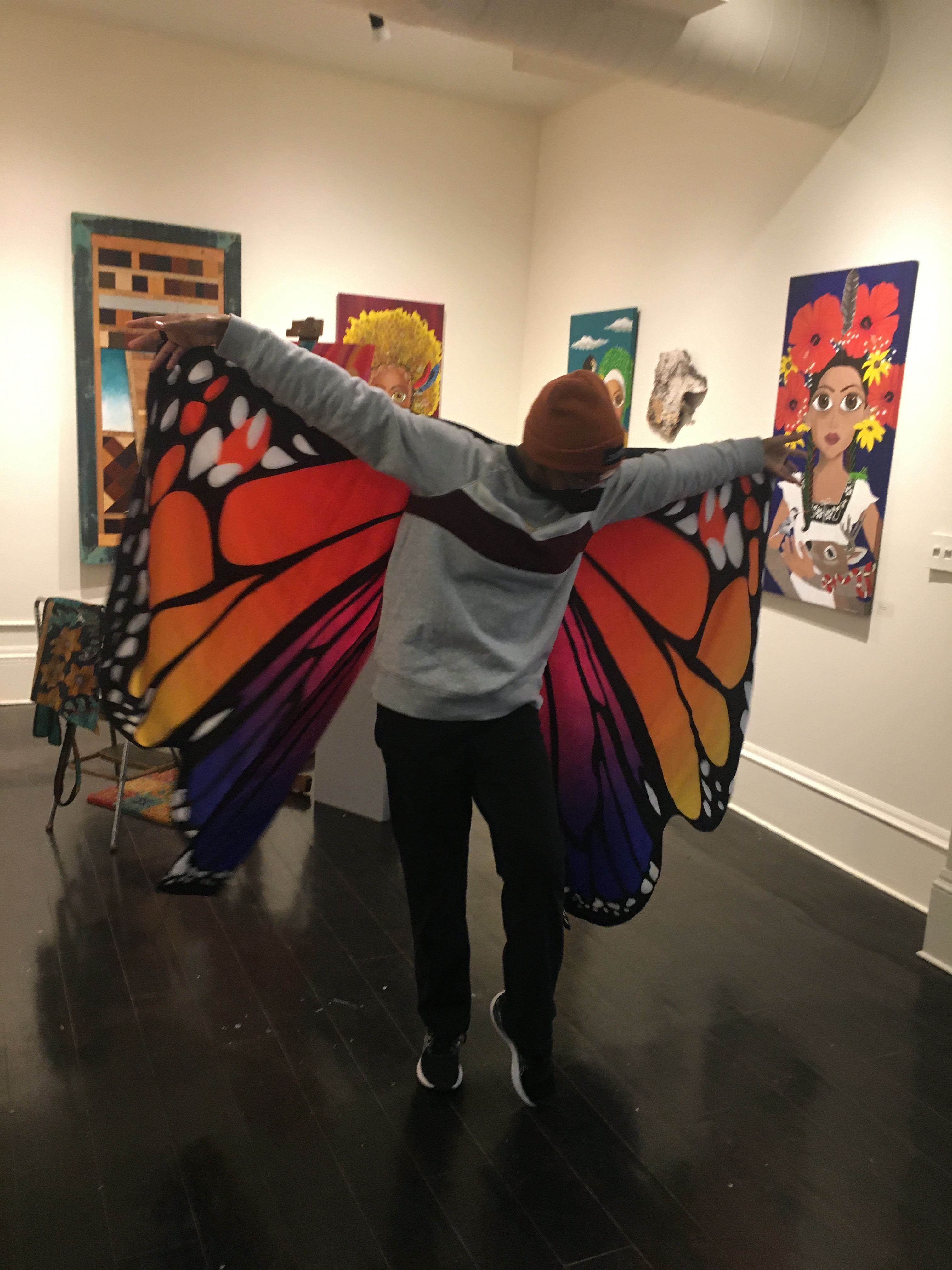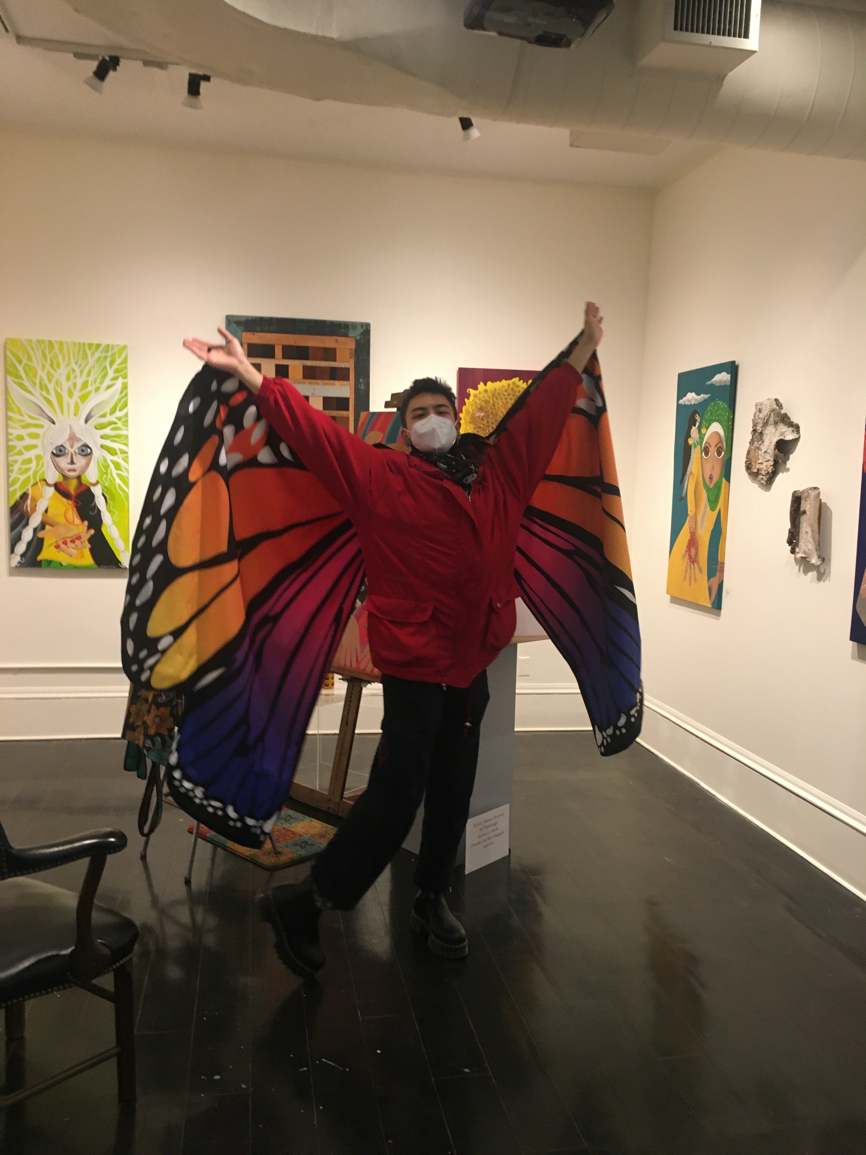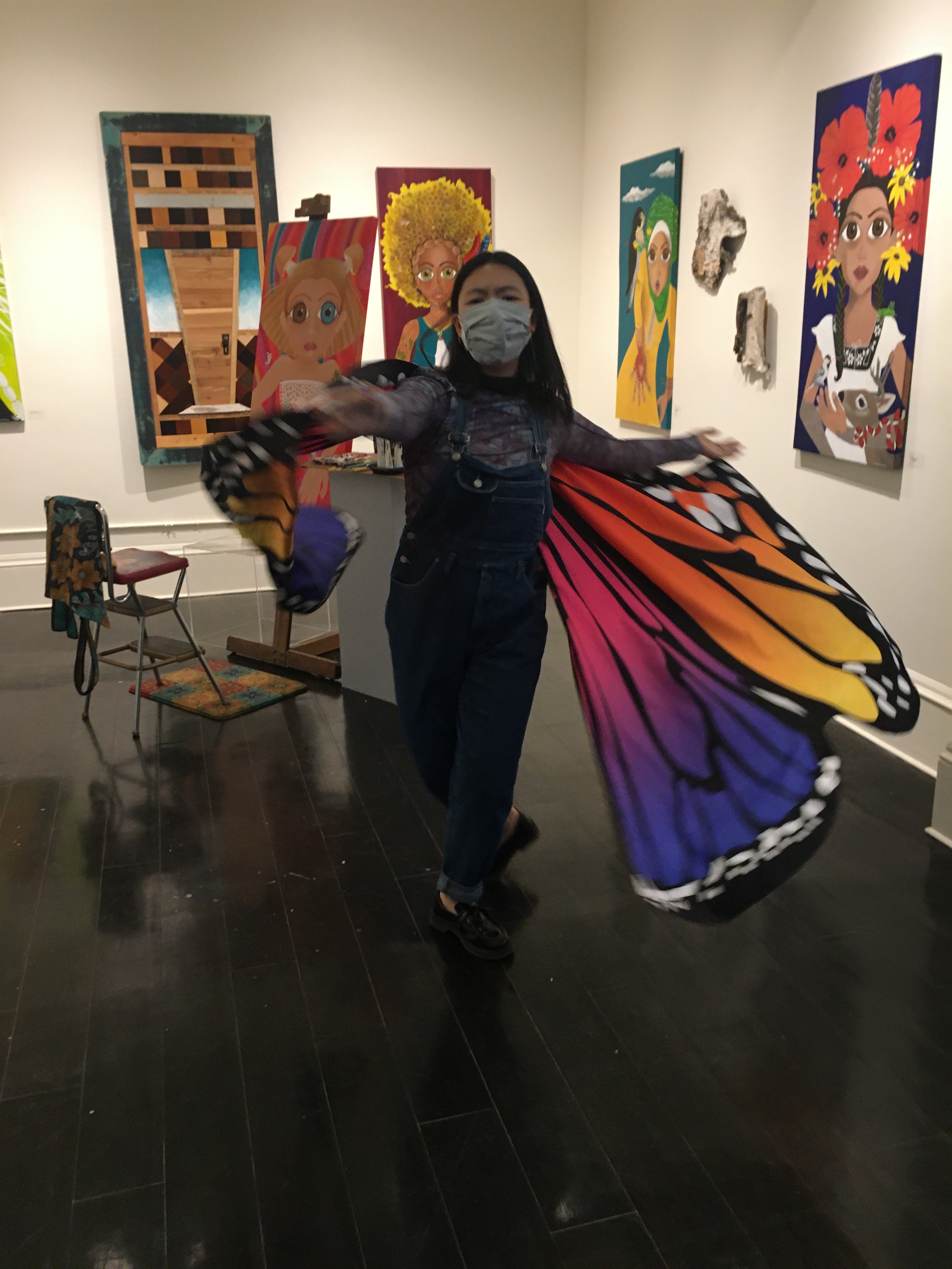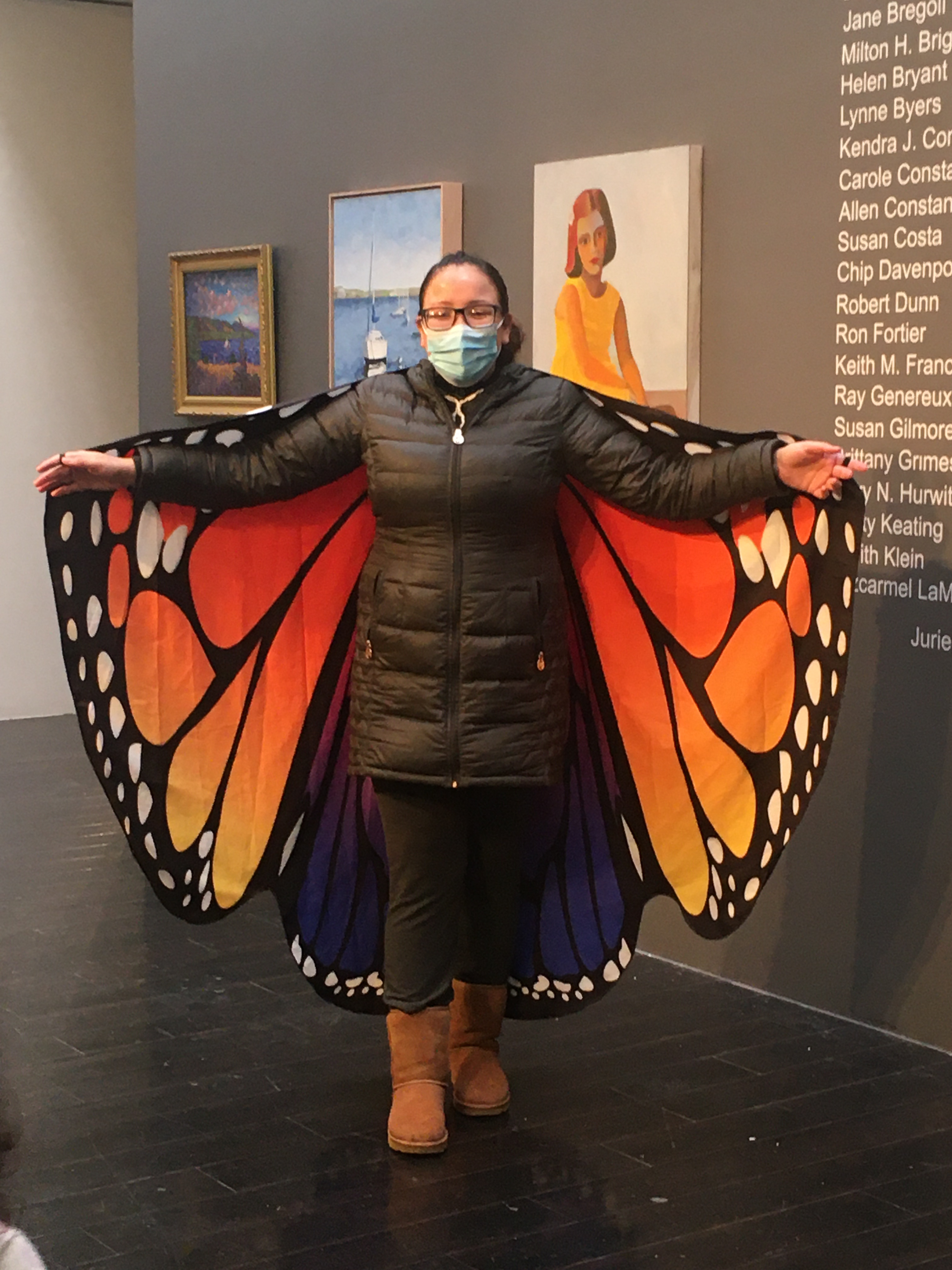 At last ten weeks had come to a close and I put on my butterfly wings to honor what had been my space to create in during my residency. My new artwork not yet complete would head back to my home studio to further evolve. My mother arrived to don the wings and flutter around a bit. Then my Arts Connect International community joyfully arrived from Boston to fill my last days with laughter, excitement, and deep reflection. Dena & Iris joined in to see me off and two of the youngest art enthusiasts learned that they too can fly. Then just as fast as I flew in, it was time to fly off once again on to my next adventure. Then I was off once again with deep gratitude for all of the support, connections, enhanced inspiration, and my grandmother’s hatbox full of acrylic paints and possibilities.