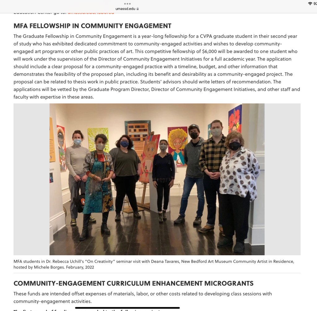 A great big thank you to everyone at The New Bedford Art Museum for welcoming me and assisting me with whatever I needed during my stay Ashley Occhino, Dena Hayden, Zack, Michelle, Kat, & Iris. I had the pleasure of sharing my practice and discussing my work with them, with local middle school students, as well as with UMass Dartmouth MFA students. It was a great feeling to feel celebrated and embraced by my hometown community while sharing my creative practice and my healing journey through art. It was amazing to be back in this space that I had worked in so many years ago looking in on the art of others. It is a truly humbling space to be in when the roles are reversed and your work is the one being viewed, discussed, and uplifting others.