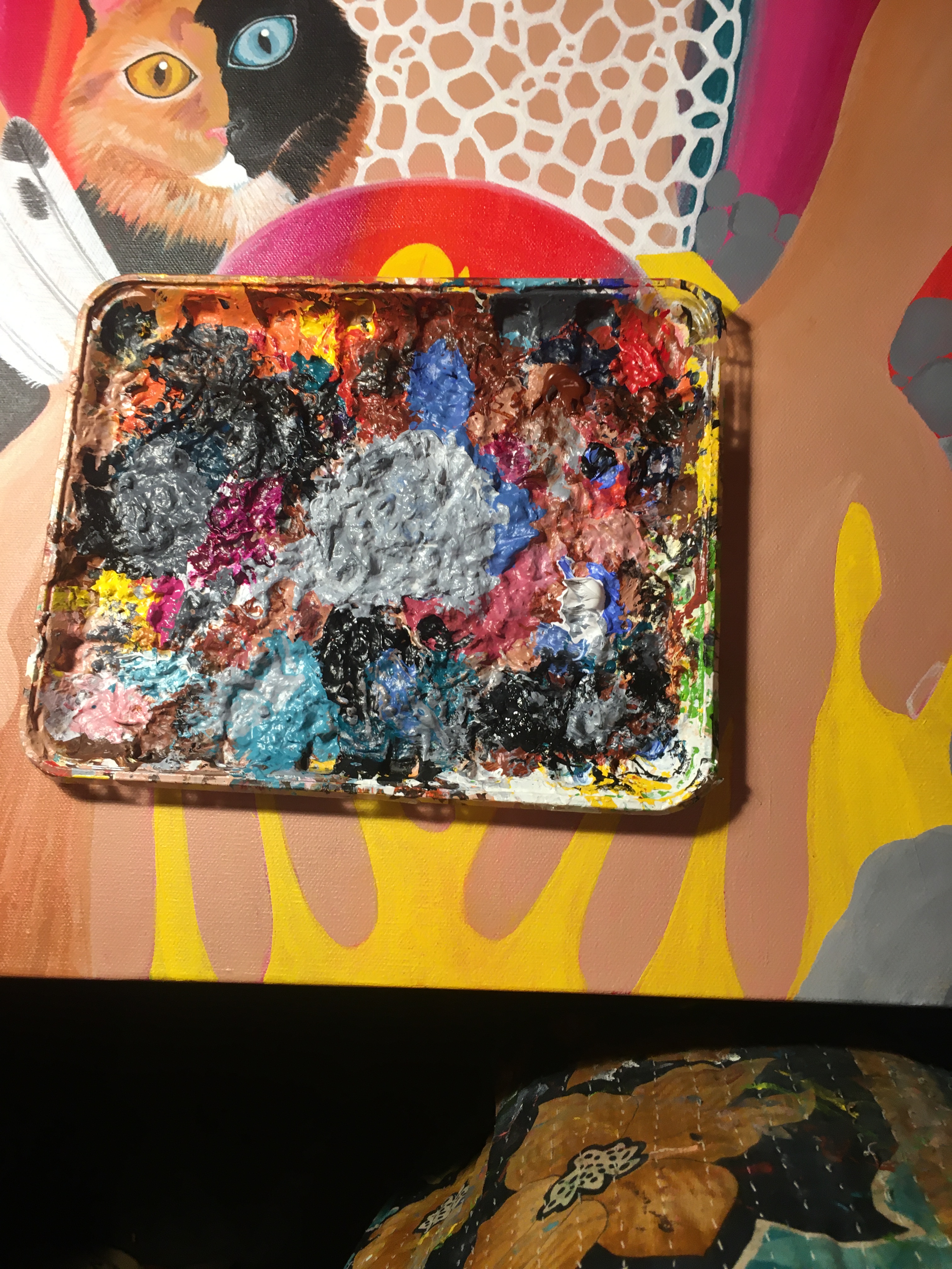 INTRODUCING Solomiya! I just came to the realization that I never officially introduced this old soul out into the world. So much has taken place since her arrival. The majority of this painting was created at the New Bedford Art Museum during my ten week artist residency which ran from late December through early February. The war in the Ukraine broke out and needless to say some additions were inspired by the tensions within our world. The name Solomiya is a Ukranian name with a Hebrew origin meaning Peace, or a woman of peaceful nature.