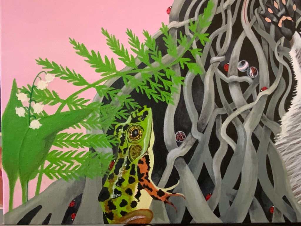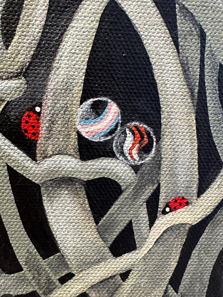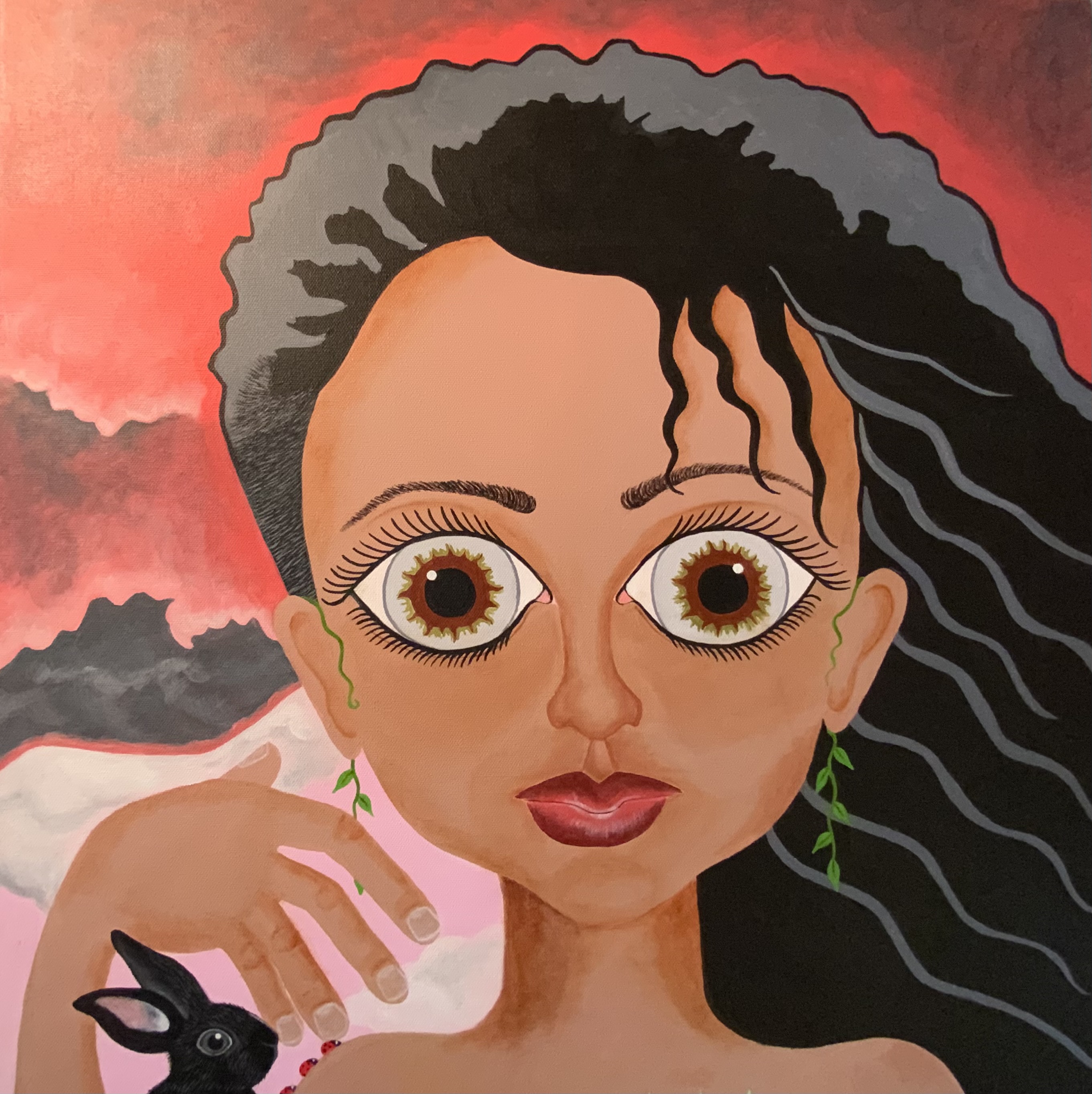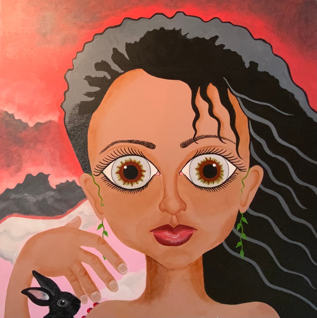 Introducing Mariana Encapsulated! She has finally fully arrived in all of her wholeness. Each canvas is a blank page in which a new story is written. Myself, injustice, the world and all of its intricacies and creatures are all woven into each canvas. Not only self portraits but each piece in this series showcases humanity and the interconnectedness of all things. We are not singular, we are part of the whole. Everyday we choose to uplift or breakdown, to advocate or remain silent, to deplete or to replenish. Over many months of painting this new human so much has happened in my life and in the world. There have been new arrivals, departures, chaos, injustice, grief, celebrations, love, and joy. What you are seeing is an unfolding. Each new painting in this series is a new page, a new chapter of the story. A blank canvas in which I write upon with consistently broadening brush strokes.