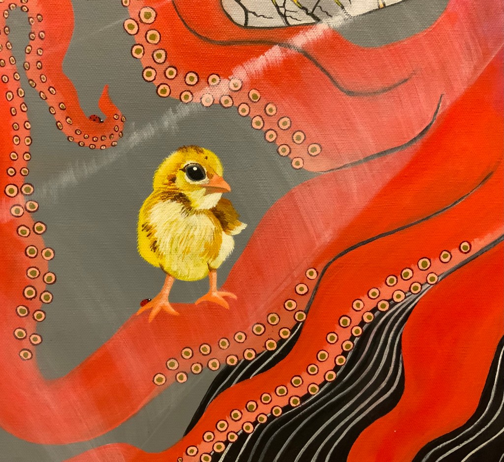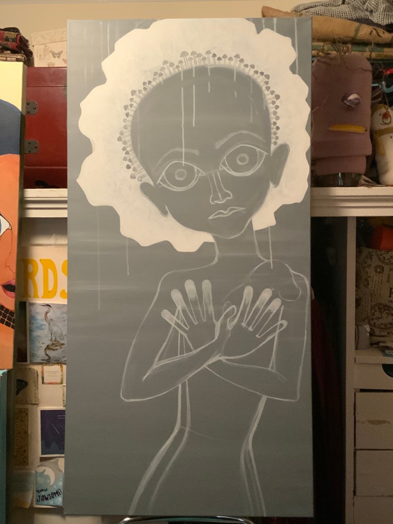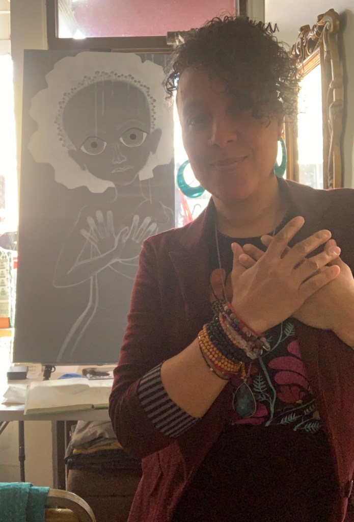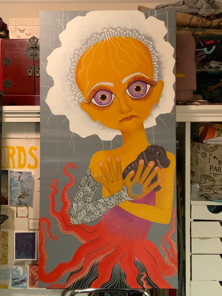 Introducing Terra Stancia. Emerging very colorfully and hopeful into a very complex colorful world. When looking deeply into those violet eyes a very definitive named emerged. Terra Stancia it would be! I always learn something when I embark upon a new painting journey. When animals and ideas arrive into my consciousness through my dream worlds and waking life. I then do some research regarding these elements. When the eyes for this painting called out loudly for purple I began looking for images of violet eyes. I then discovered that violet eyes are a very real but rare phenomenon. Elizabeth Taylor had very striking violet eyes. Also for those of you who didn’t already know hippos have a four chamber heart, octopuses have three hearts, and earthworms have five. Every piece is always a fascinating exploration within and without, processing life one brush stroke at a time. ✌🏽💜🌞 jummyjeenz D.T.