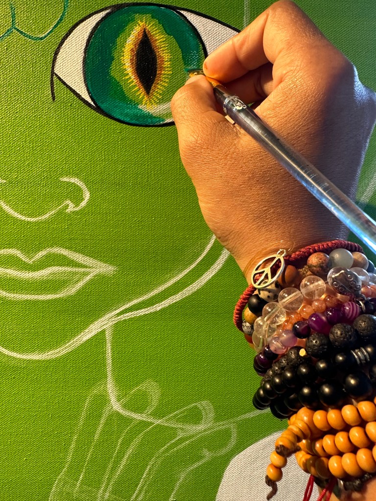 Welcoming Heron into the world! A much more complex world since the very first brush strokes began many months ago, but this bold one arrived regardless. So many emotions synthesize within every new palette a whole lifetime watered down within acrylic paint. Her story is boldly unfolding and ready to fly off of the canvas.