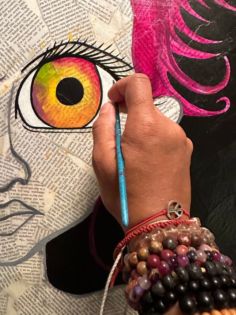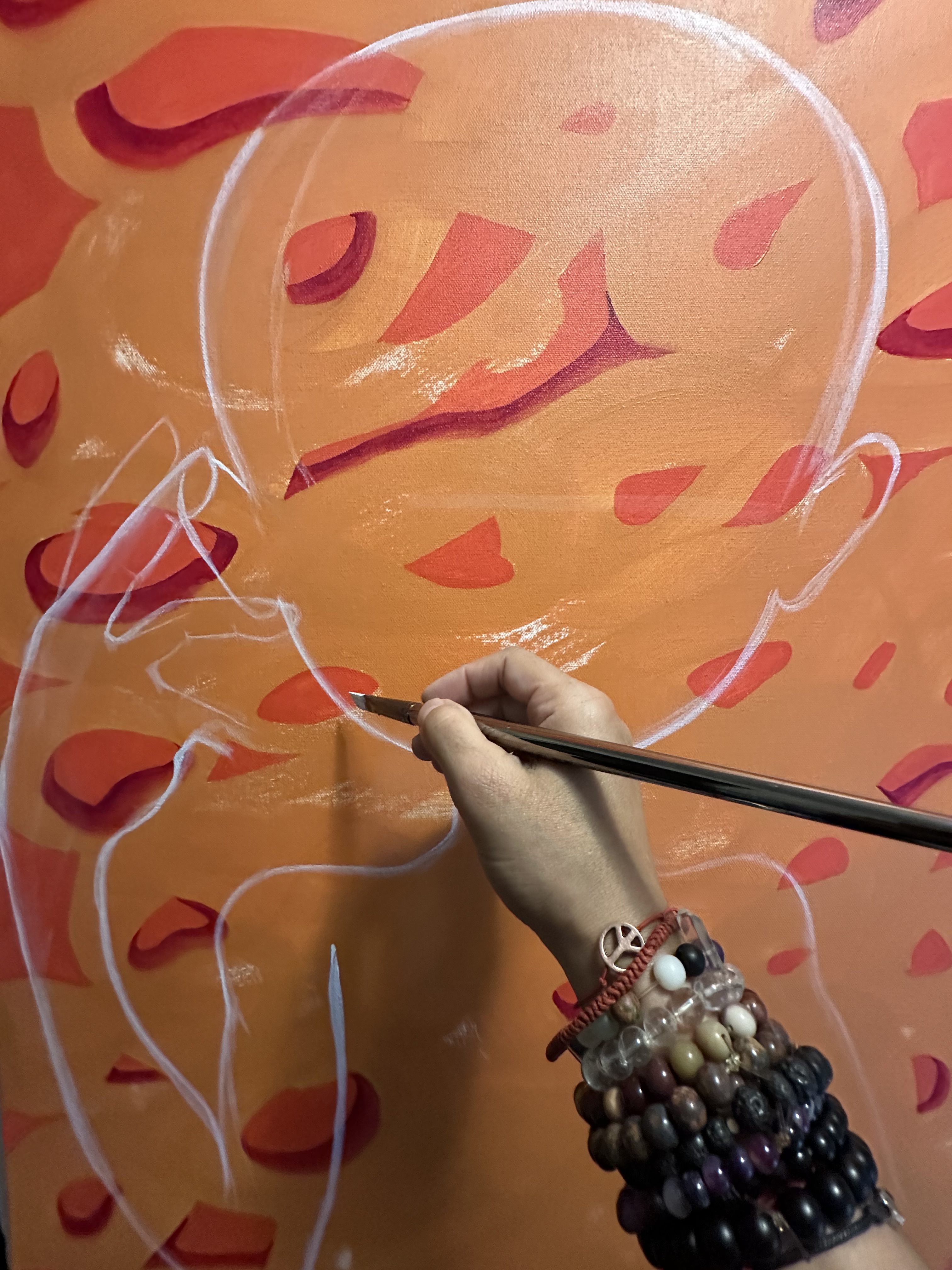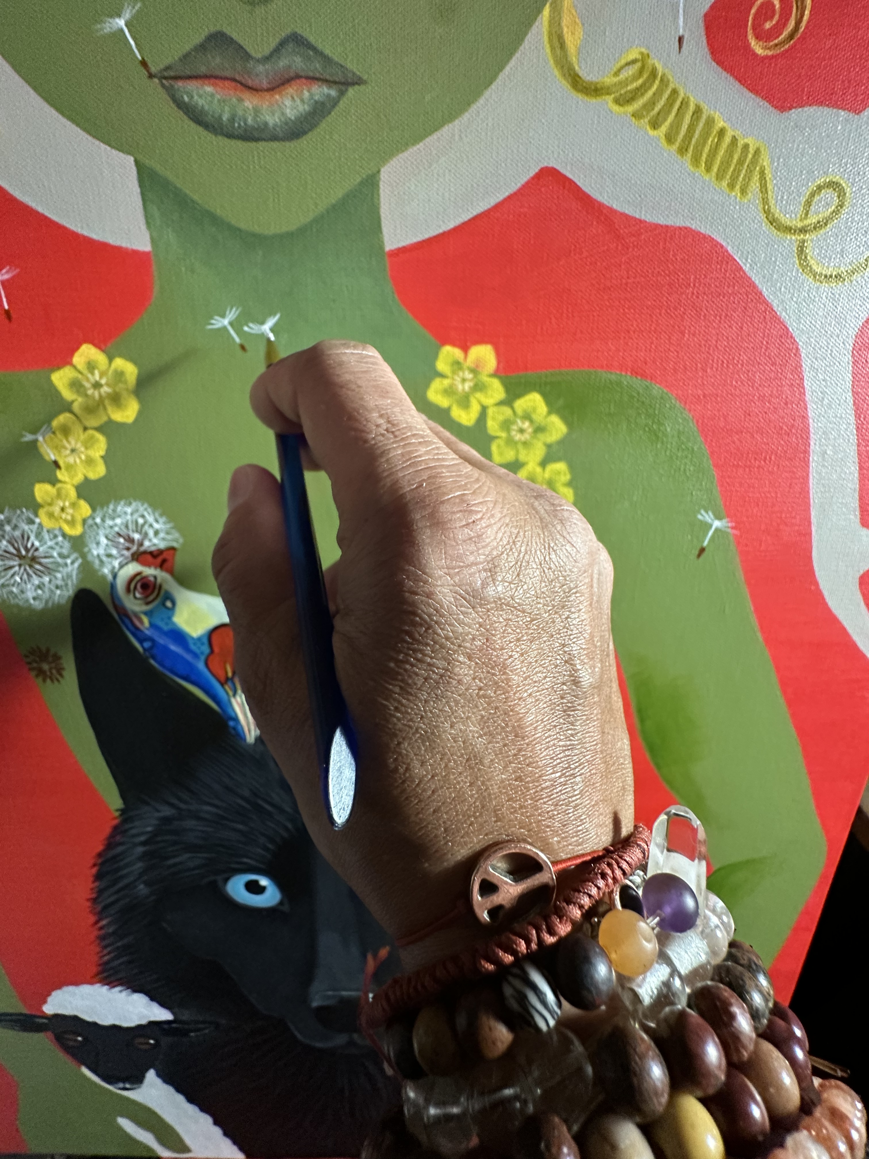 This is officially the last piece in this series that has been arriving and evolving since 2017. So nine years of paint, hurdles, joy, grief, pain, war, and hope all reflected back within every brushstroke. These are just a few snapshots of this labor of love, growing, learning and healing. My art is intuitive, meditative and all encompassing of my life and the world around me. They are representations of all of humanity but simultaneously self portraits. I look forward to sharing them all within a physical space with you all and look forward to the conversation that these painting will generate with one another as well. They are large and bold and have been protectors for me. I hope that you too will get to see and feel their presence very soon. ~ Peace, Deana