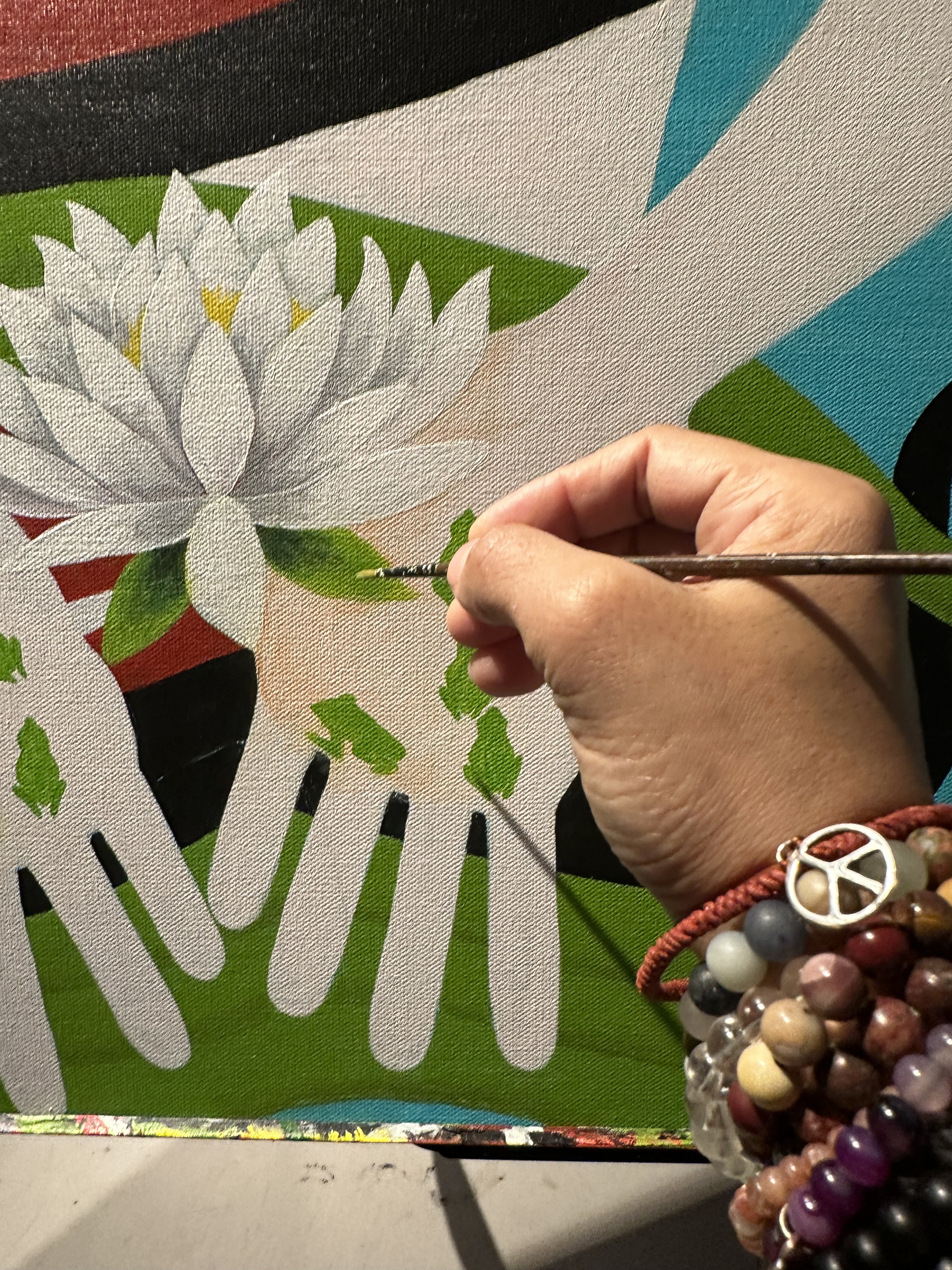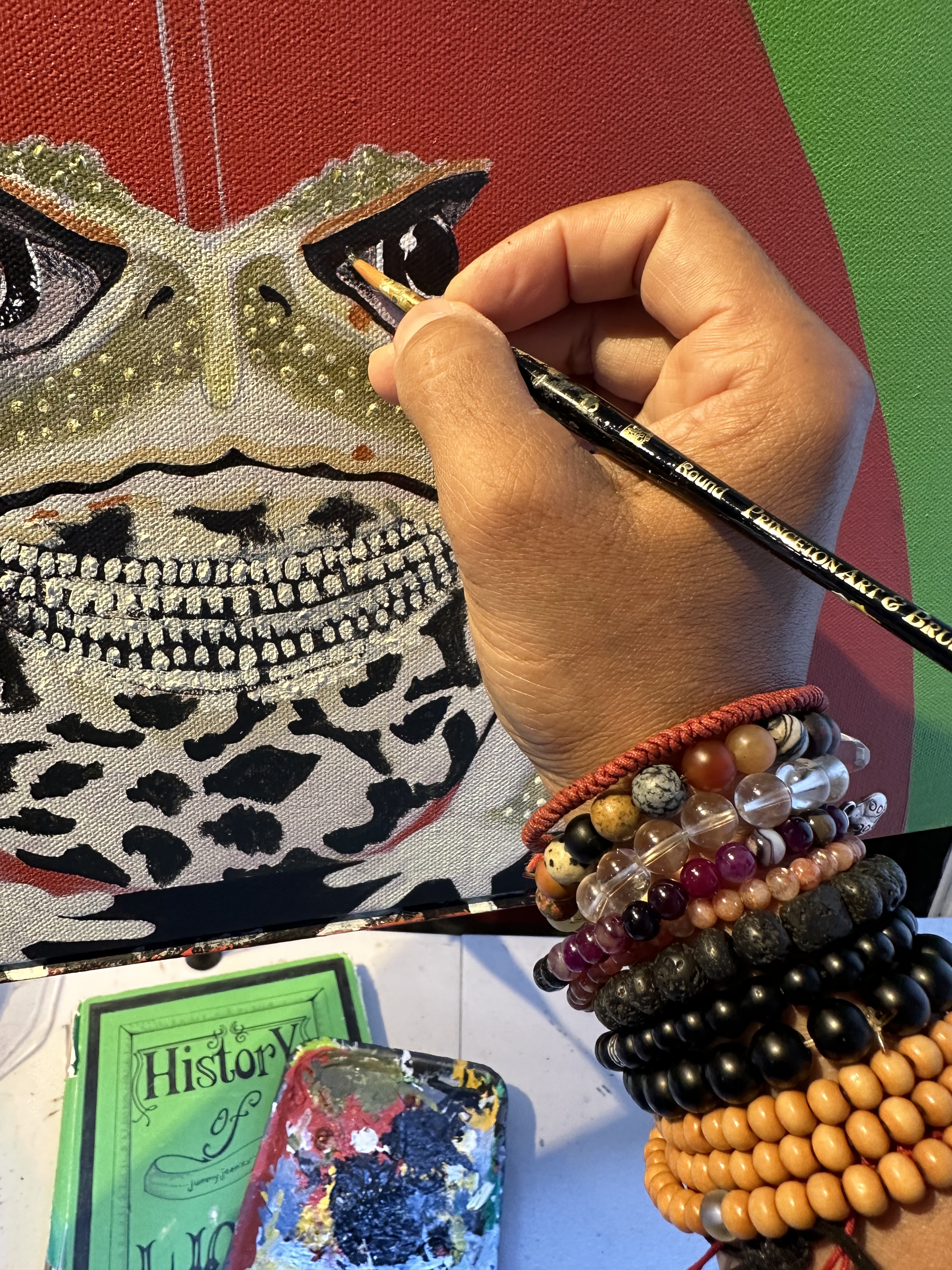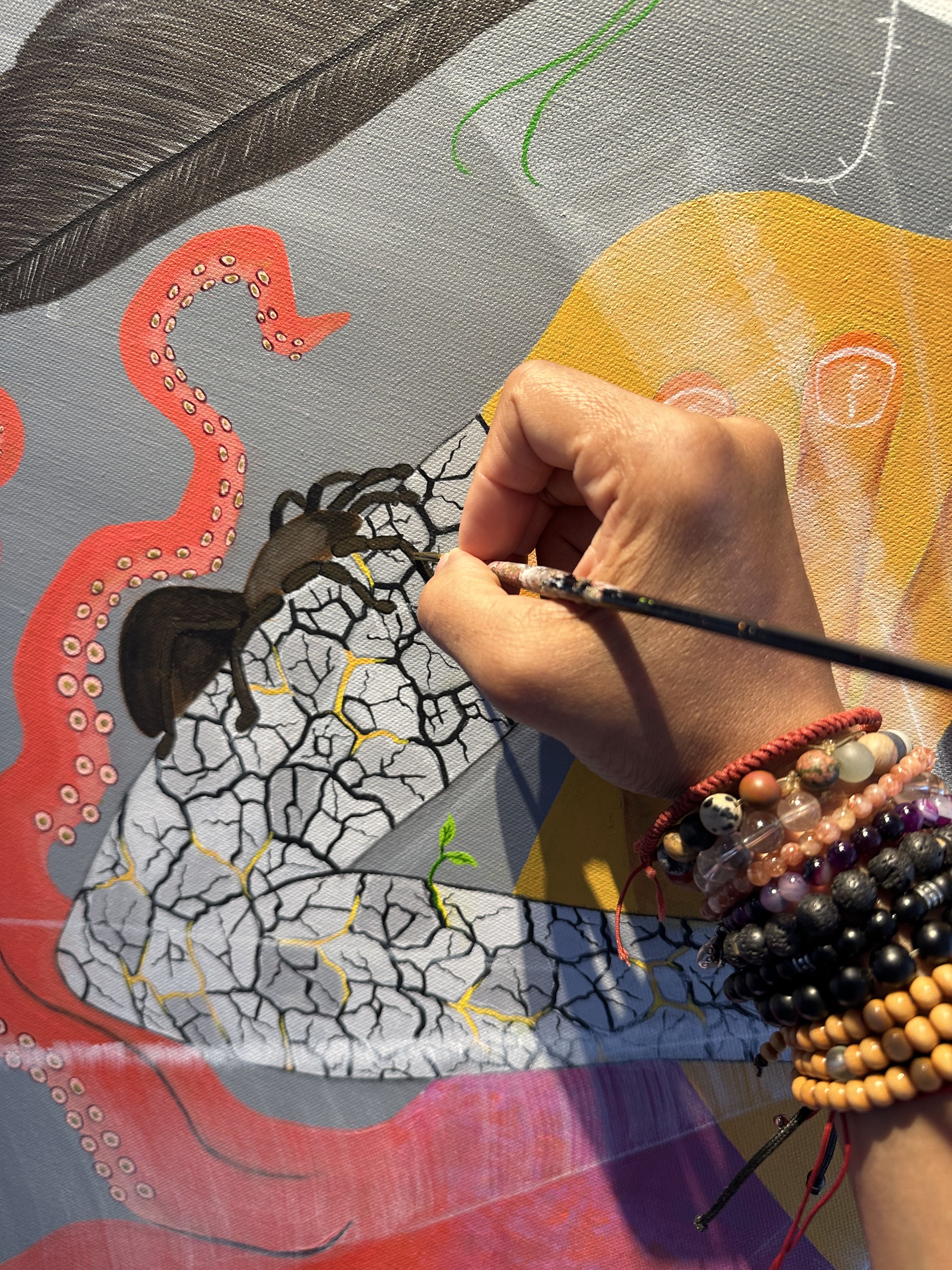 This is officially the last piece in this series that has been arriving and evolving since 2017. So nine years of paint, hurdles, joy, grief, pain, war, and hope all reflected back within every brushstroke. These are just a few snapshots of this labor of love, growing, learning and healing. My art is intuitive, meditative and all encompassing of my life and the world around me. They are representations of all of humanity but simultaneously self portraits. I look forward to sharing them all within a physical space with you all and look forward to the conversation that these painting will generate with one another as well. They are large and bold and have been protectors for me. I hope that you too will get to see and feel their presence very soon. ~ Peace, Deana