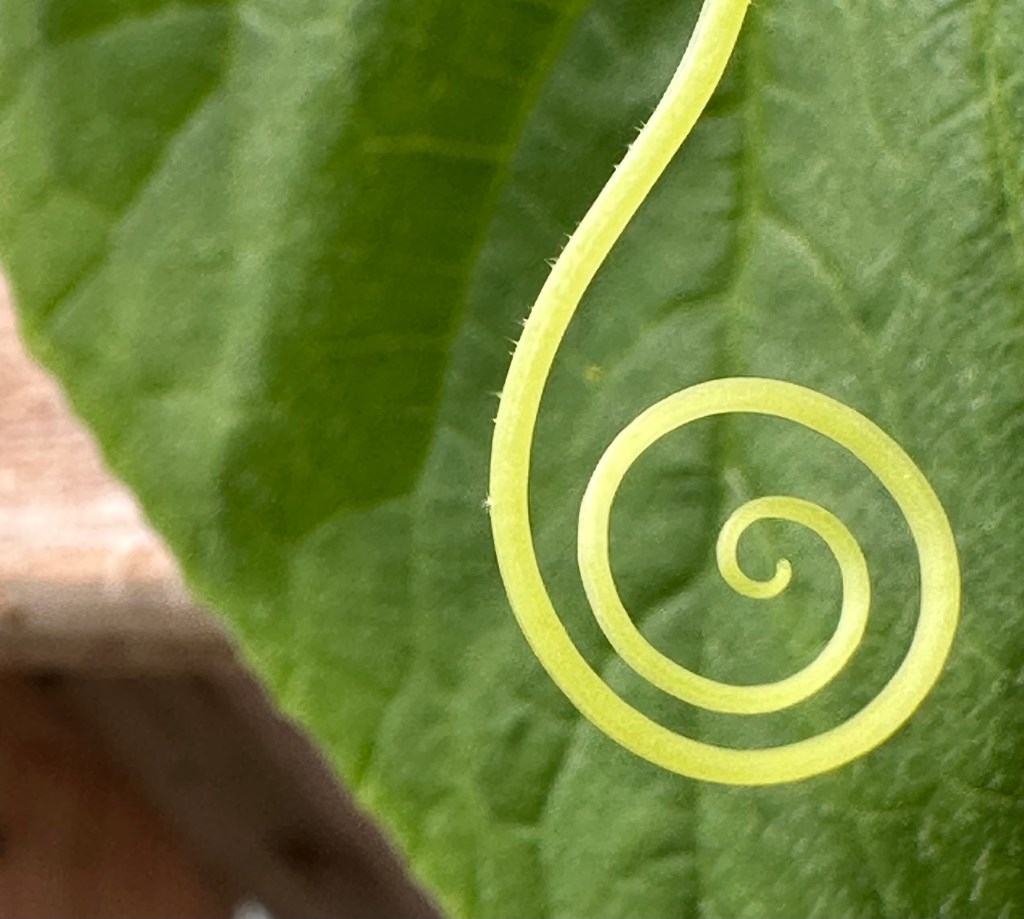 With green tendrils